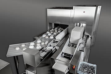 Mientras que un sistema de lavado semiautomático requiere que haya personal de lavado que deposite manualmente los platos y cuencos en la cinta del lavavajillas de cinta transportadora, en un sistema automático este trabajo lo realiza una unidad de separación automática.