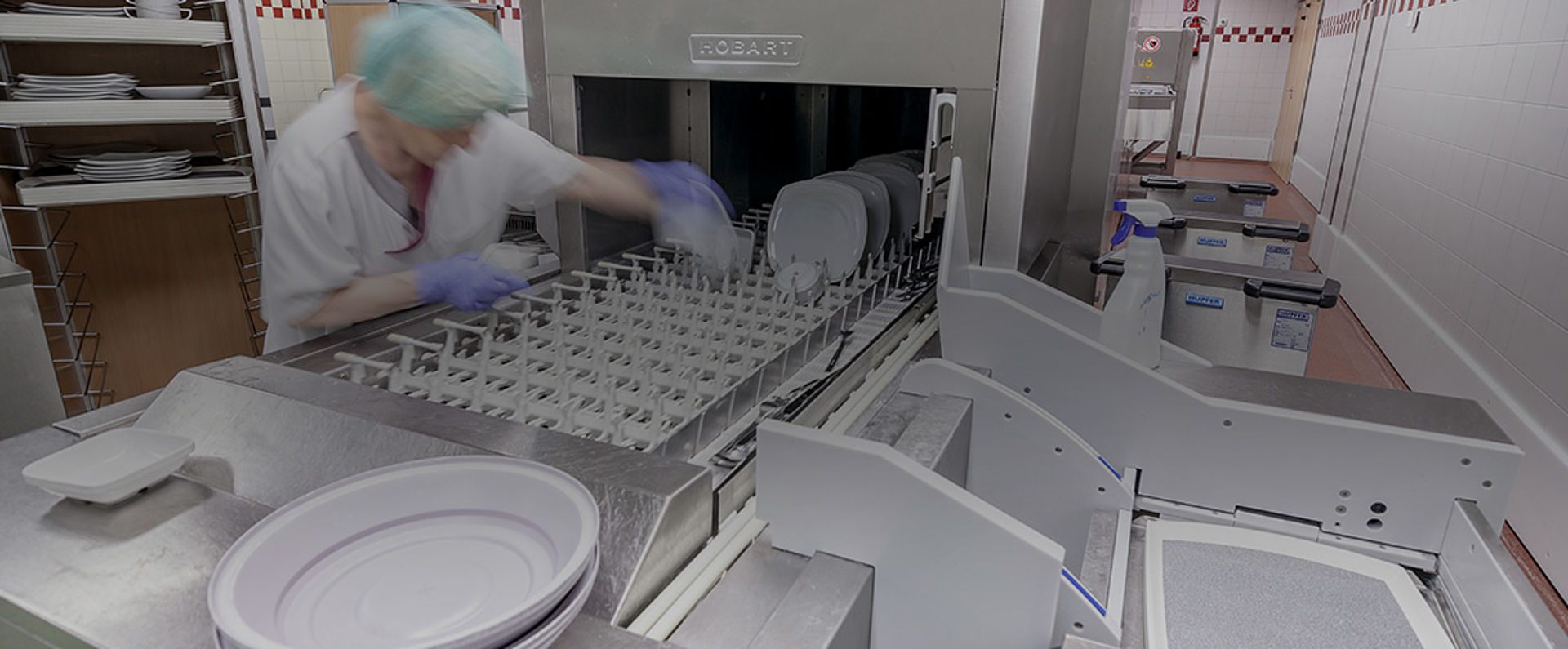 En la cocina central del hospital SHG de Völklingen, los platos y los vasos se colocan en el tranportador manualmente; los cubiertos, atraídos por la fuerza magnética, caen sobre su propia cesta de lavado antes de que la bandeja se mueva automáticamente hasta el lavavajilas. De este modo, se transportan 15 bandejas por minuto cargadas con nueve piezas de vajilla cada una (como cubreplatos, platos y cubiertos) mediante la cinta para que puedan usarse en el próximo servicio. Desde abril de 2015, toda la vajilla se limpia simultáneamente en una máquina: HOBART autoLINE. "Originalmente planeamos trabajar con un lavavajillas y un lavador de utensilios para bandejas y cubiertos", explica Jürgen Neumann, trabajador de HOBART en la planificación de proyectos y participante del diseño in situ del sistema de lavado. "Pero en ese momento, se lanzó el autoLINE y fue la opción que convenció finalmente al SHG". Esto quiere decir que el fregadero alberga una sola máquina que limpia todos los objetos y ocupa menos espacio. El factor decisivo para el SHG fue el cálculo de eficiencia económica.